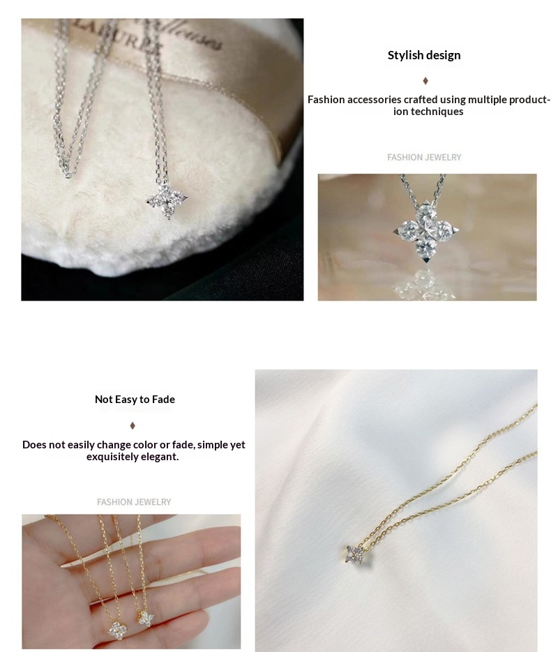 Colors: Four-Leaf Clover Necklace (Stainless Steel with Platinum Plating), Four-Leaf Clover Necklace (Stainless Steel with Gold Plating)